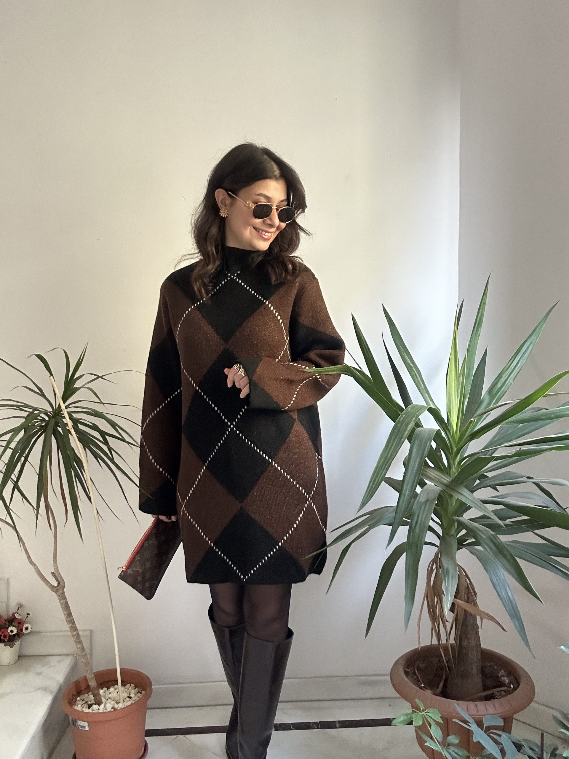 Kahverengi Örgülü Uzun Elbise