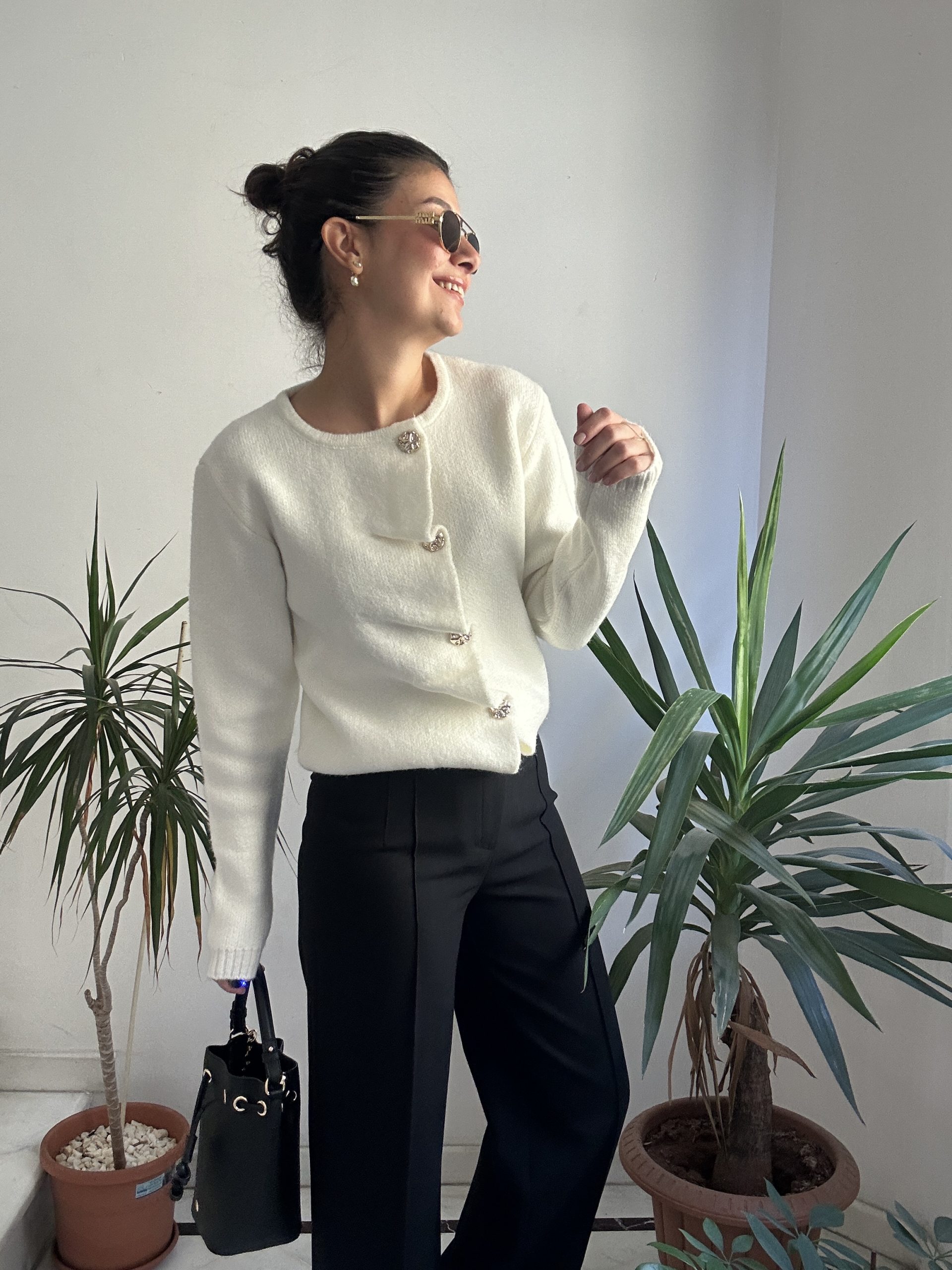 Modelin Ölçüleri: Boy: 163cm, Kilo: 56kg, üzerindeki 36 beden.